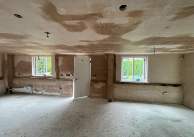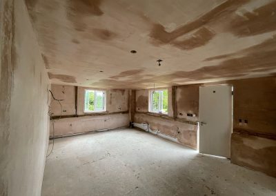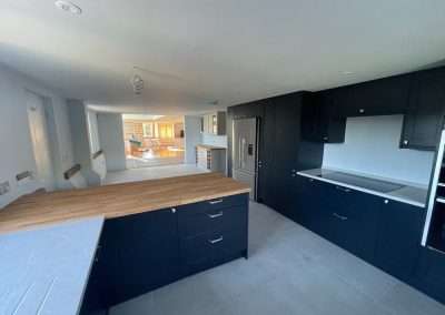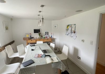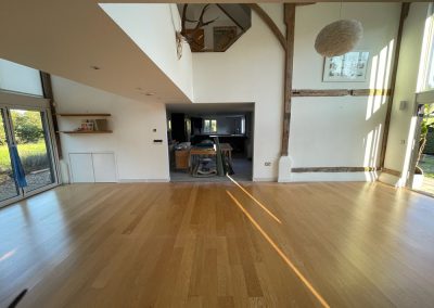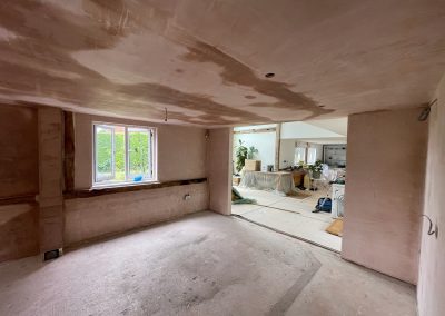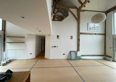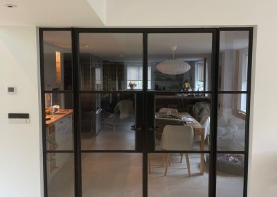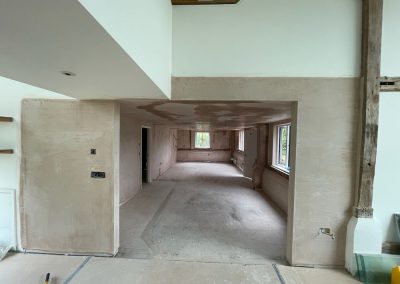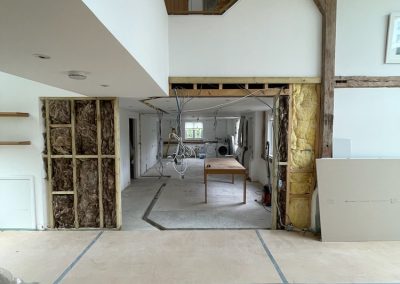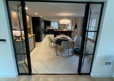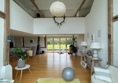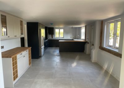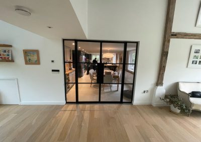 We removed an existing dated kitchen and utility room, carried out some structural alterations to open up this barn conversions living space installing crittal doors creating a divide but maintaining the open aspect.