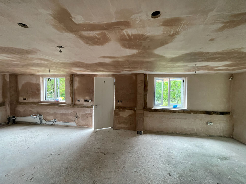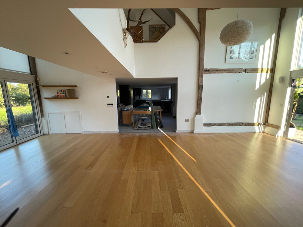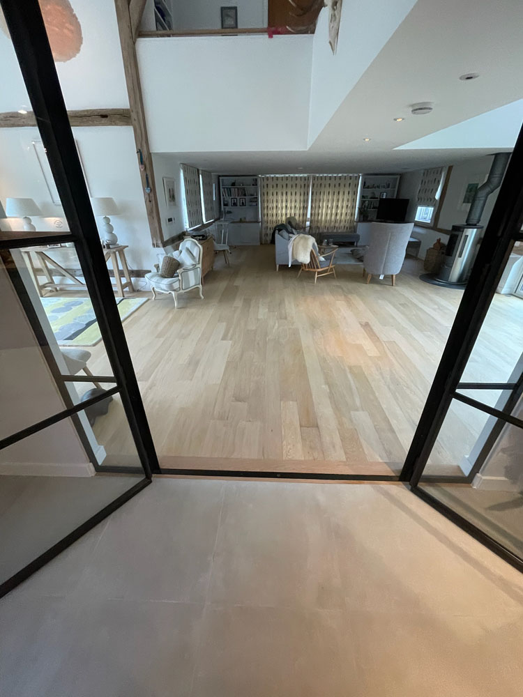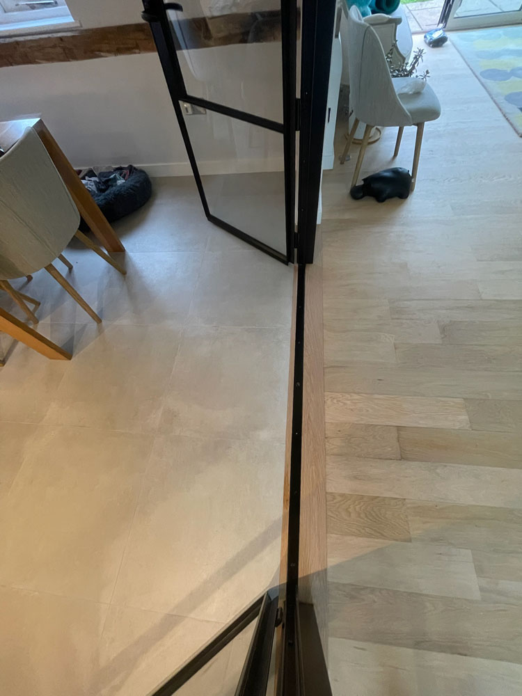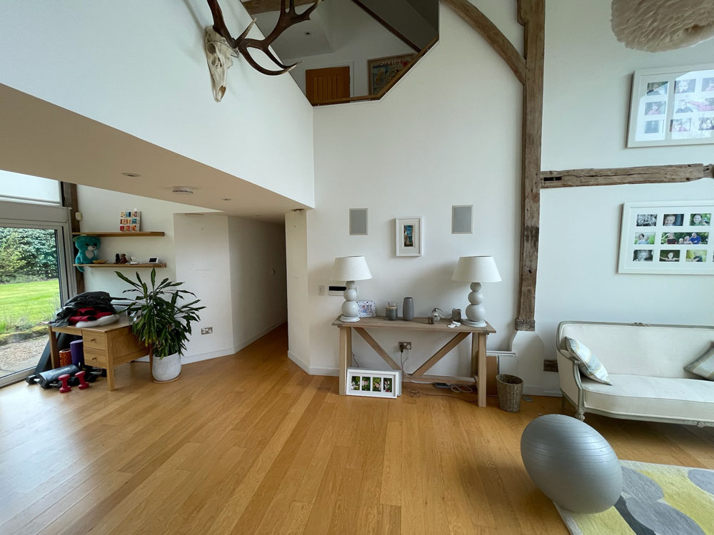 We removed an existing dated kitchen and utility room, carried out some structural alterations to open up this barn conversions living space installing crittal doors creating a divide but maintaining the open aspect.