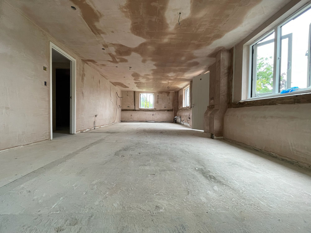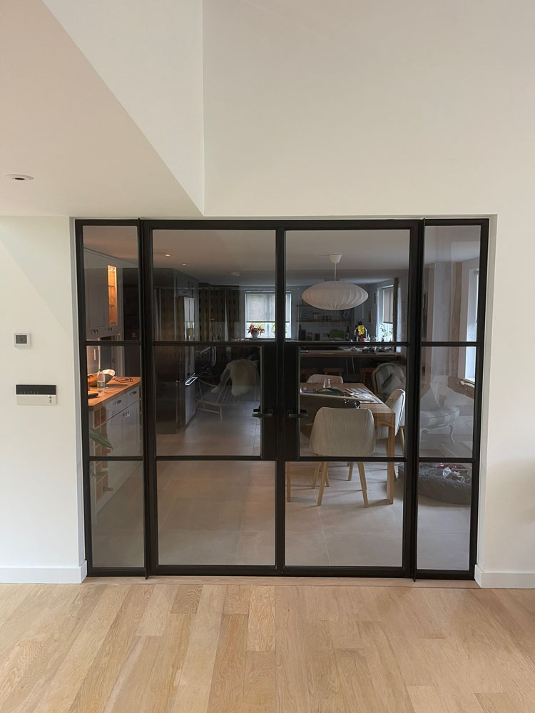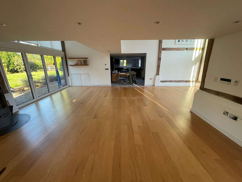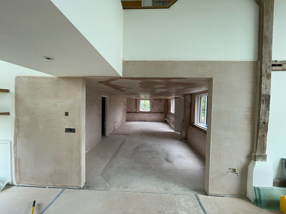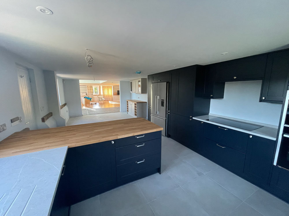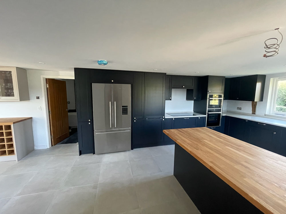 We removed an existing dated kitchen and utility room, carried out some structural alterations to open up this barn conversions living space installing crittal doors creating a divide but maintaining the open aspect.